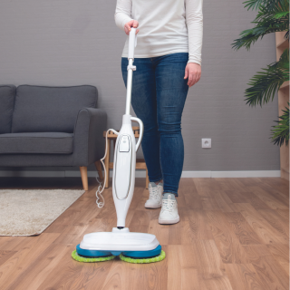 - Technologie de Rotation Avancée : Grâce à ses deux têtes rotatives qui effectuent jusqu'à 140 tours par minute, ce balai vapeur nettoie, exfolie et polit vos sols avec une efficacité inégalée. Les disques en microfibre lavables assurent un nettoyage en profondeur sans effort, tandis que le manche télescopique s’ajuste de 110 à 125cm permet une facilité de manipulation.